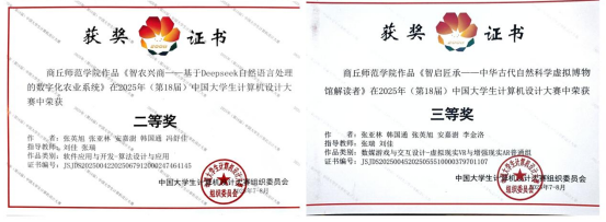 近日,2025 年(第 18 届)中国大学生计算机设计大赛全国总决赛顺利收官。在激烈的比拼中,我校九九热精品视频学生凭借扎实的专业素养与突出的创新思维崭露头角,成功斩获全国二等奖 1 项、三等奖 1 项,充分彰显了我校在计算机学科人才培育上的卓越成果。