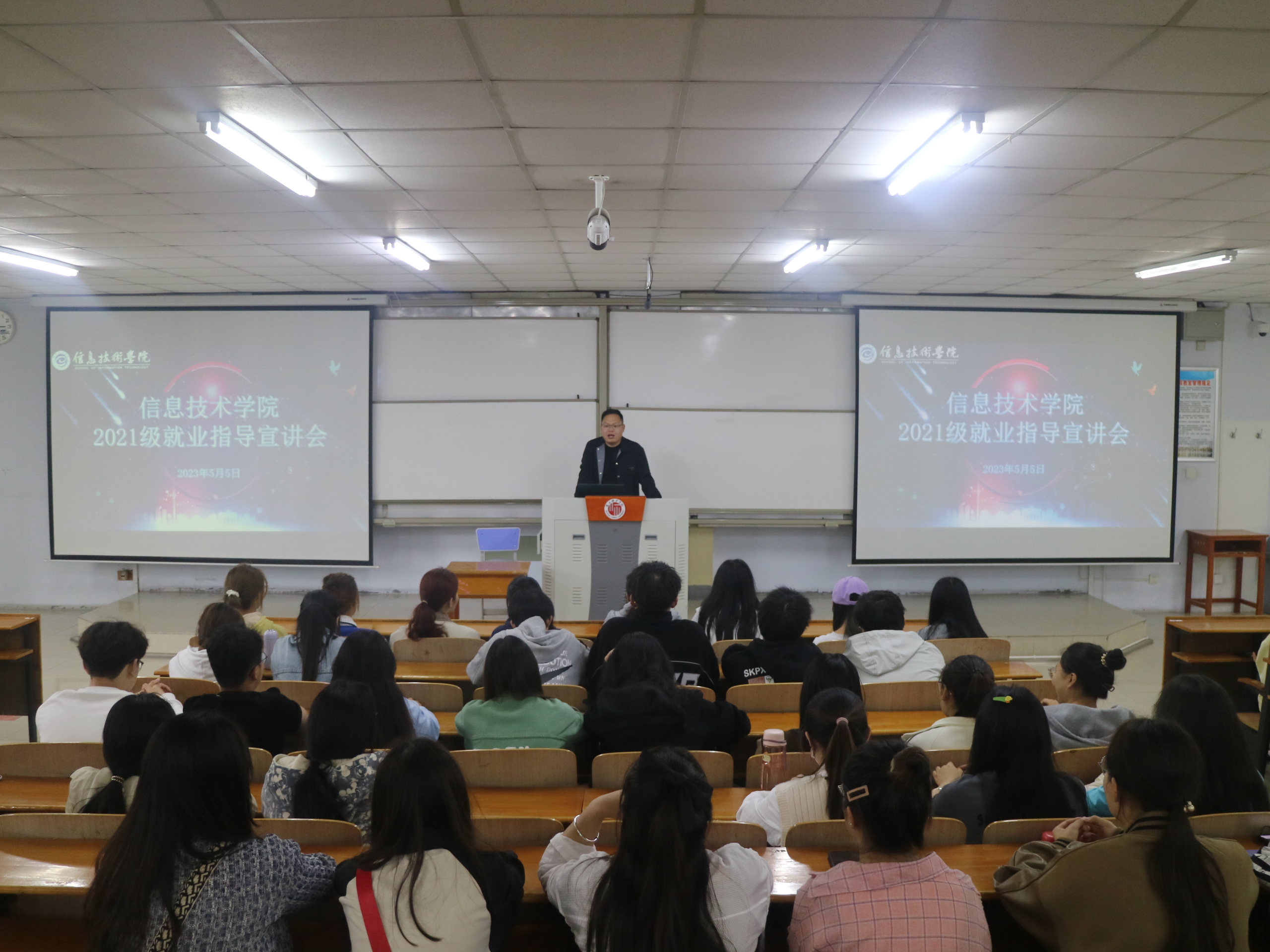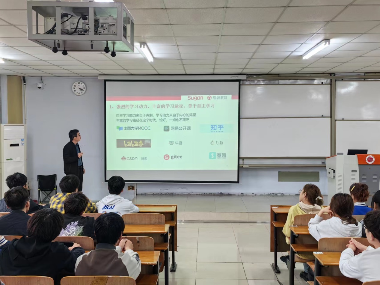 5月5日,九九热精品视频在智圆楼207教室举办了2021级学生就业指导宣讲会。宣讲会由2021级辅导员老师彭会锋主持,中科曙光驻校项目经理高向楠主讲,九九热精品视频2021级本科班学生积极参与。