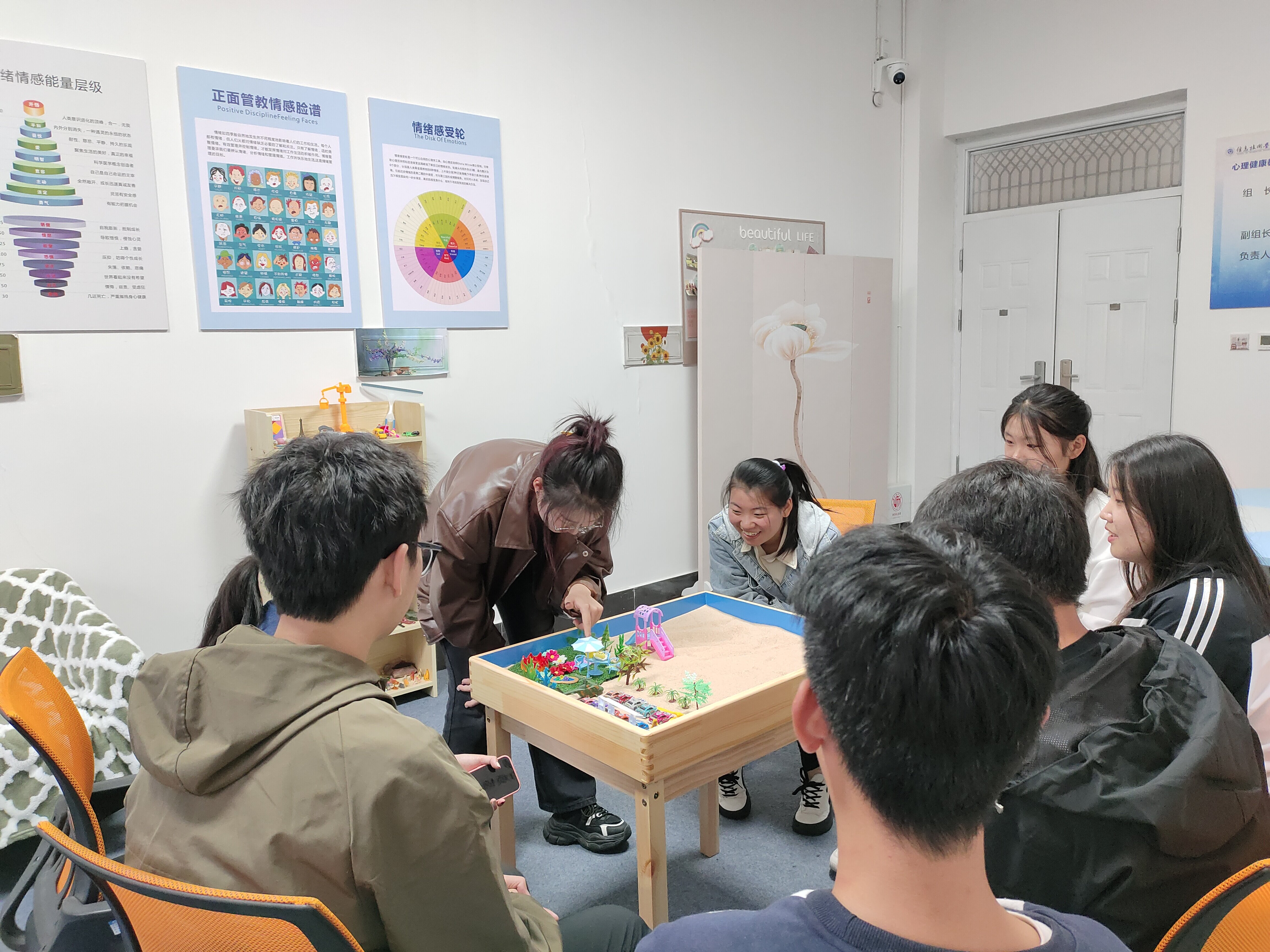 活动三:九九热精品视频开展“游沙润心,感知自我”团体沙盘心理辅导活动