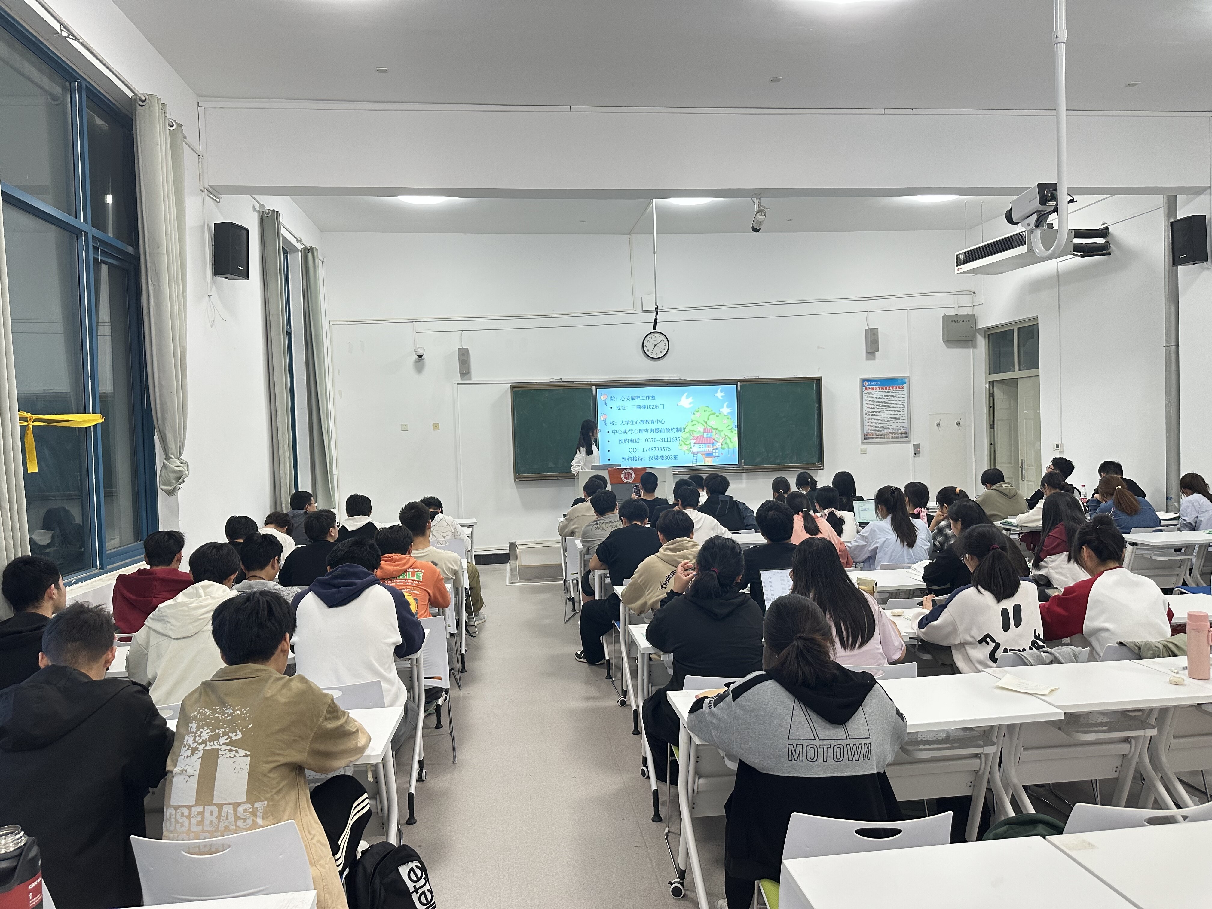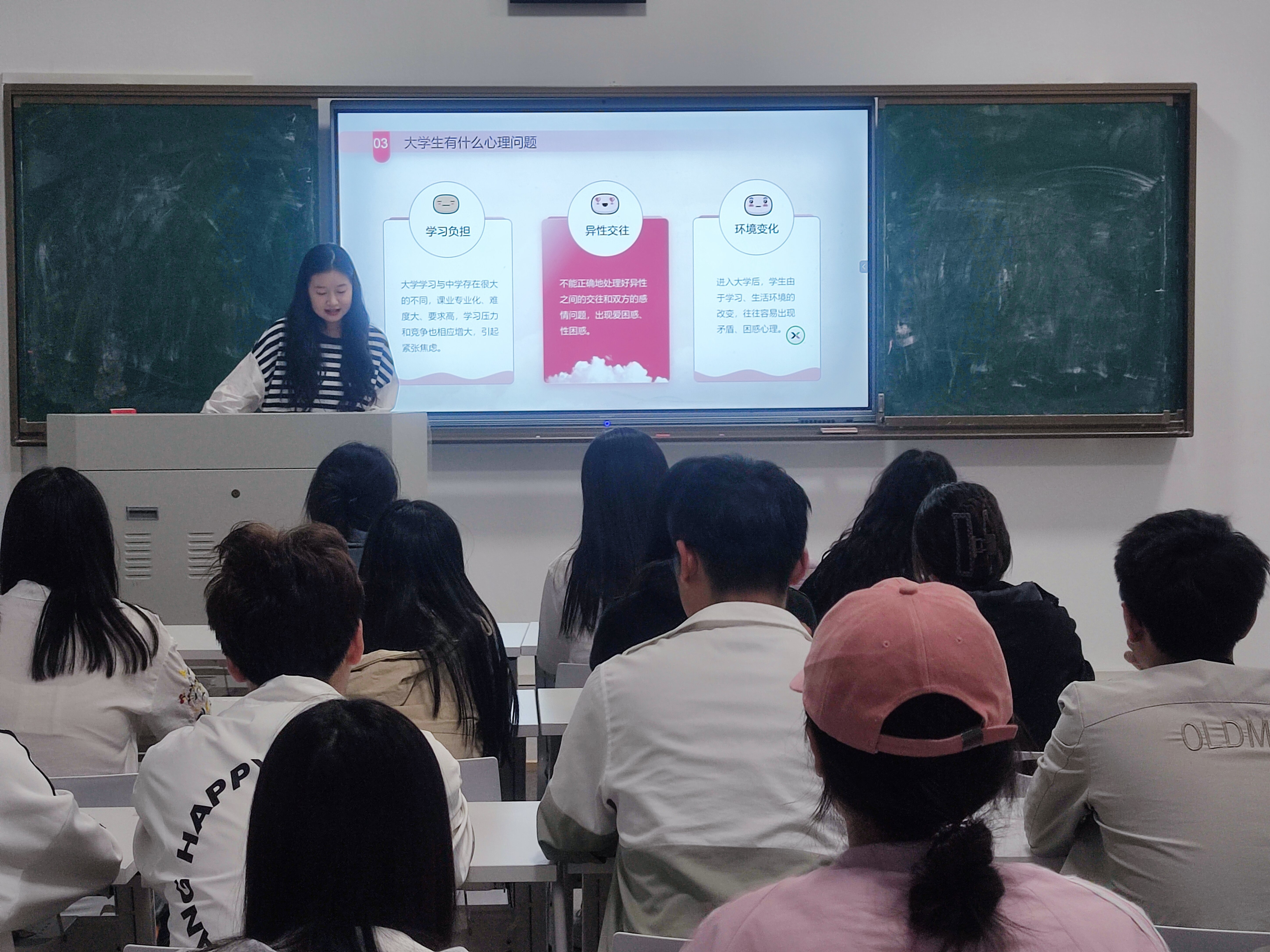 班会过程中,各班就“什么是心理健康”进行了深入讨论,通过了解大学生常见的心理问题,共同分析产生心理问题的原因,针对问题提出不同的解决方法。同时,心理委员在会上分享了排解心理压力、自我疏导的方法,也向大家介绍了“大学生心理健康教育中心”和“心灵氧吧工作室”,向大家科普了多个心理援助热线,提供多个可靠的缓解自身心理压力的渠道。