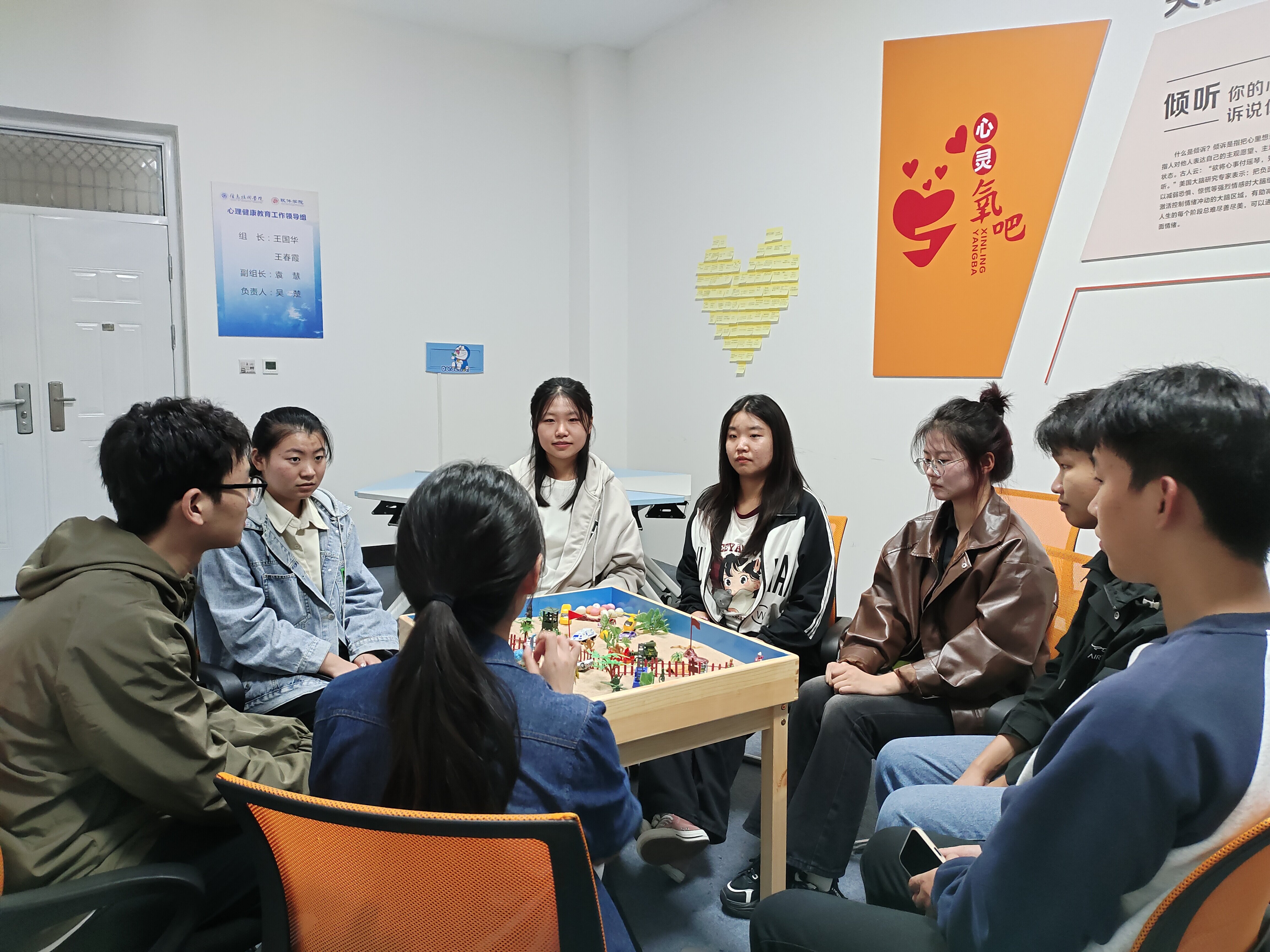 2023年10月27日,我院在三商南楼102心灵氧吧工作室开展“游沙润心,感知自我”团体沙盘心理辅导活动,23级13名心理委员参加活动。沙盘组织活动由吴楚主持开展。
