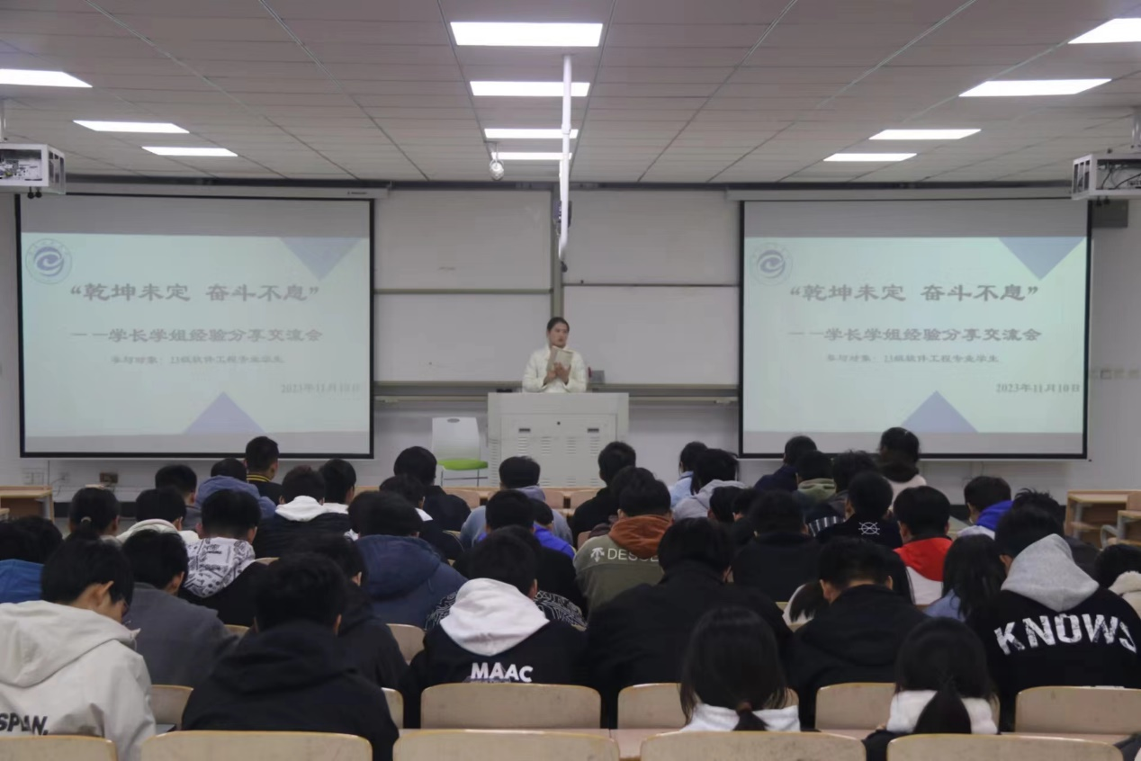 最激昂是少年志,最闪耀是追梦人。为帮助大一新生明确学习目标,合理规划大学四年的学习与生活,11月10日下午,九九热精品视频于行方楼217教室对软件工程专业大一新生进行第一次考研信息交流和经验分享会。九九热精品视频副院长方莹、优秀学长刘帅杰、阴琦琦以及23级软件工程专业全体学生参加了会议,本次会议由辅导员魏雨欣主持