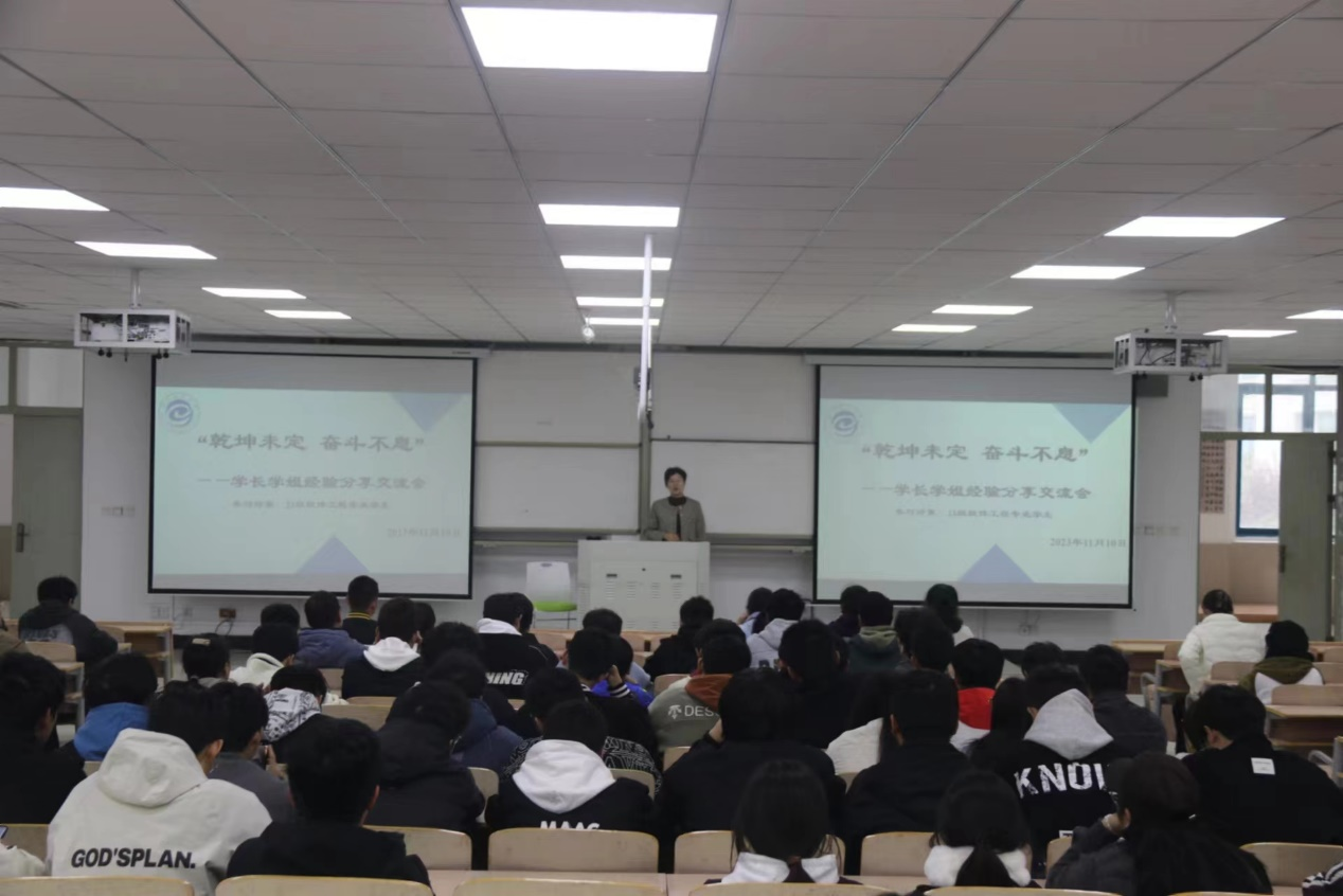 会议伊始,副院长方莹对优秀学长们的到来表示欢迎,并鼓励同学们踊跃提问、互相分享,继续弘扬学院优良学风。会中,刘帅杰学长就大学期间的学习经验及考研经历进行分享,鼓励学弟学妹们要扎实学好专业知识、提升自身综合能力,要做有能力、有底气去选择的那个人,而不是被选择的人。阴琦琦学长则在考研方面给予同学们规划与指导,首先,他为同学们分析了近些年考研的趋势;其次,结合自身的学习与工作经验,就工科专业学生在考研方面提出建议;最后,他提醒同学们要合理规划大学四年的学习任务,面对考研,要敢想、敢拼、敢考。活动最后,辅导员魏雨欣对两位优秀学长的分享表示衷心感谢,并提醒同学们机会永远留给有准备的人,天道酬勤,唯有奋斗,方能创出自己的精彩。