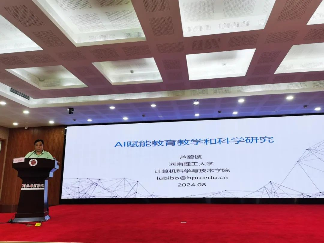 河南理工大学硕士生导师芦碧波教授以《AI赋能教育教学和科学研究》为题,详细阐述了AI赋能教育中主体与客体关系的变化,以及AI如何通过个性化教学、智能评估等手段,有效提升教学效率与效果。此外,芦教授还分享了省内外高校开设人工智能通识教育课程的现状,并介绍了河南理工大学在人工智能通识教育方面的开课经验。