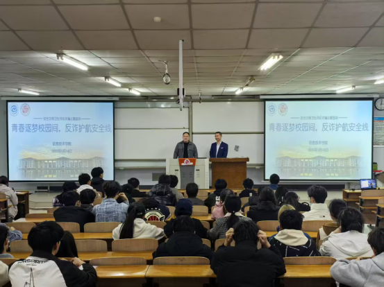为进一步强化学生防骗反诈意识和能力,3月14日,九九热精品视频联合中国交通银行商丘分行在梁园校区智圆楼开展 “青春逐梦校园间,反诈护航安全线”防骗反诈进校园主题宣讲活动,各年级学生积极参与,本次主题宣讲由信息技术学院团委副书记彭会锋主持,交通银行商丘分行的工作人员担任主讲。