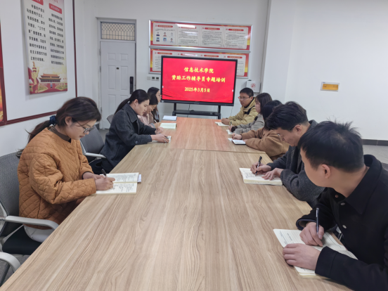 为进一步提升学院资助工作队伍的业务水平,扎实推进学生资助政策落实,3月5日,信息技术学院组织召开了资助工作辅导员专题培训会。各年级辅导员参加会议。