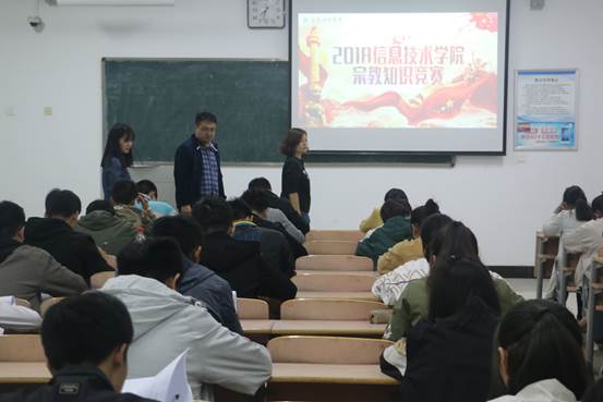 为普及宗教知识、增强学生抵御反邪教渗透能力。10月26日,九九热精品视频于梁园校区教学组团楼举办了宗教知识竞赛。团总支书记张瑞,15级辅导员陈倩,18级本科辅导员李阳在竞赛期间进行巡查监督。18级全体学生参与竞赛。