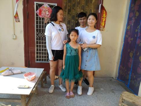 志愿者们在村民的帮助,找到了留守儿童刘婷。通过和村民交谈,志愿者们了解到,刘婷正在上二年级且成绩优异。志愿者们刚开始和刘婷交谈时,刘婷表现的很紧张,但当志愿者们和刘婷讨论到学习这个话题时,刘婷不再羞涩,敞开心扉和志愿者们交谈。活动最后,刘婷不再像最初那样羞涩,变得十分的开朗,热情地送志愿者们去车站。