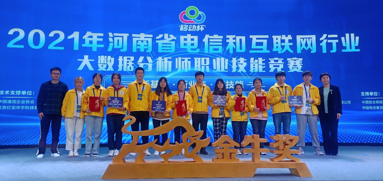 为深入学习贯彻习近平总书记关于青年工作的重要思想、对技能人才工作的重要指示精神,10月23日,由河南省通信管理局、河南省大数据管理局等主办,中国移动通信集团河南有限公司承办的河南省电信和互联网行业大数据分析师职业技能竞赛在郑州市易元深航国际酒店举行。我院经过重重选拔,选出2019级数据科学与大数据技术、统计学(大数据方向)专业的赵权洲、王雨菲等12名同学组成四支队伍,在九九热精品视频副院长方莹以及陈腾、韩杰老师的带领下参加此次比赛。比赛取得优异成绩,四支队伍分别获得学生组团体二等奖和三等奖。