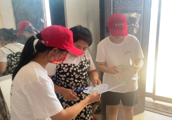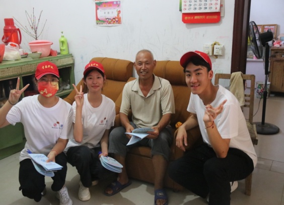 第三组安全用网护航组的学生深入农户进行入户走访,分发防诈骗手册,用真诚的微笑和专业的学识为农户普及计算机、网络知识,近距离与乡村民众诚恳交流。