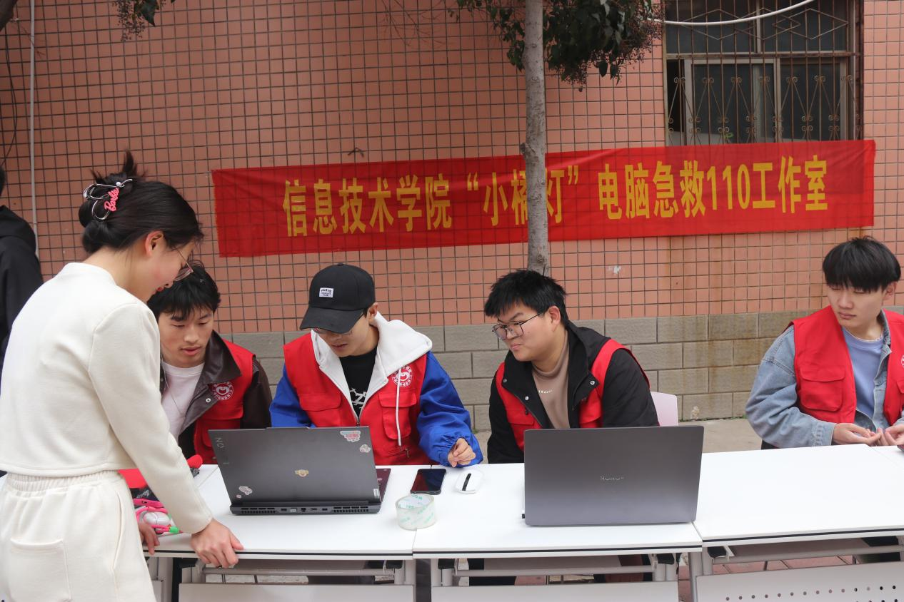 雷锋是志愿服务的先行者,志愿者是雷锋旗帜下的后来人。 九九热精品视频依托专业优势,3月17日,青年志愿者协会“小橘灯”110电脑维修工作室在梁园校区青涩餐餐厅电梯口处面向梁园校区学生开展电脑义务维修活动。