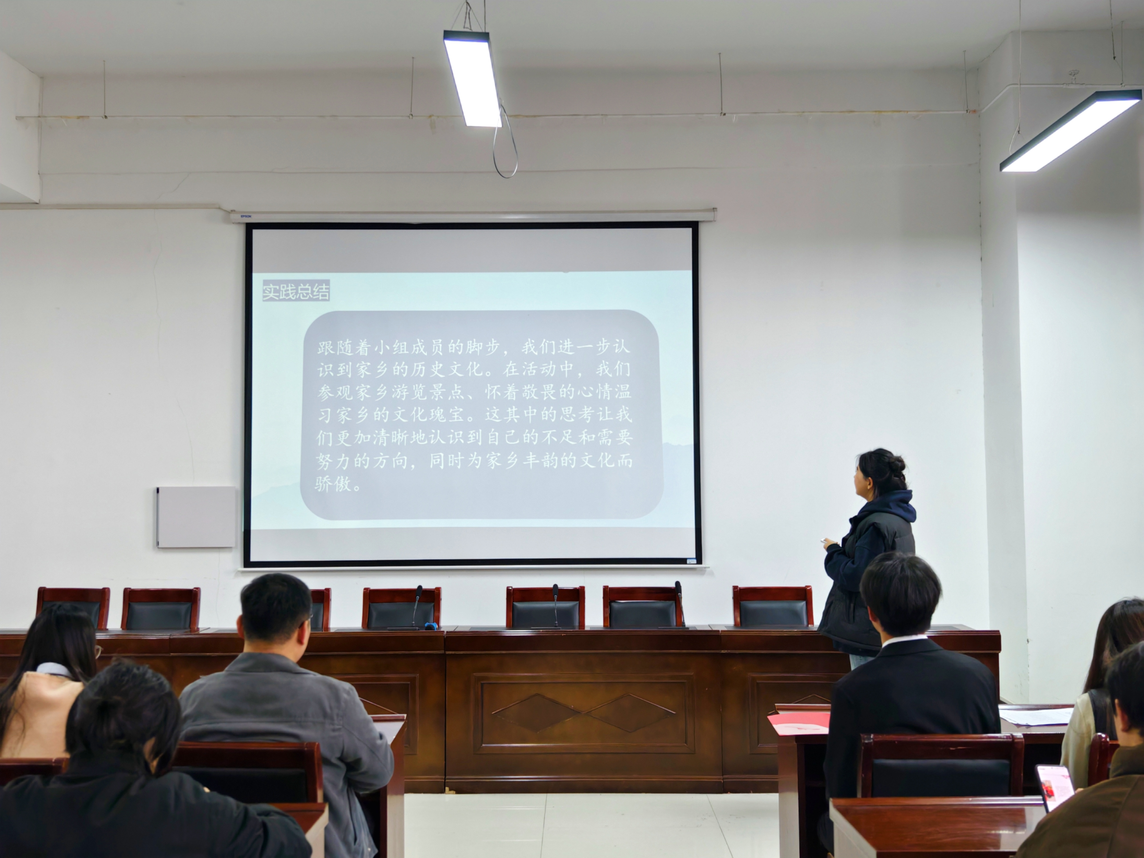 本次答辩主要分为答辩人汇报和评委提问两个环节。在汇报环节,各团队结合自身开展的实践活动,分别从习近平新时代中国特色社会主义思想宣讲、爱国主义教育、中华文化传承、乡村振兴促进等方面依次分享实践成果,汇报过程条理清晰,语言流畅。在问答交流环节,答辩人根据评委老师提出的问题,结合自身开展的实践情况进行了详细的回答,老师们也对部分实践团队存在的问题给出了指导建议。