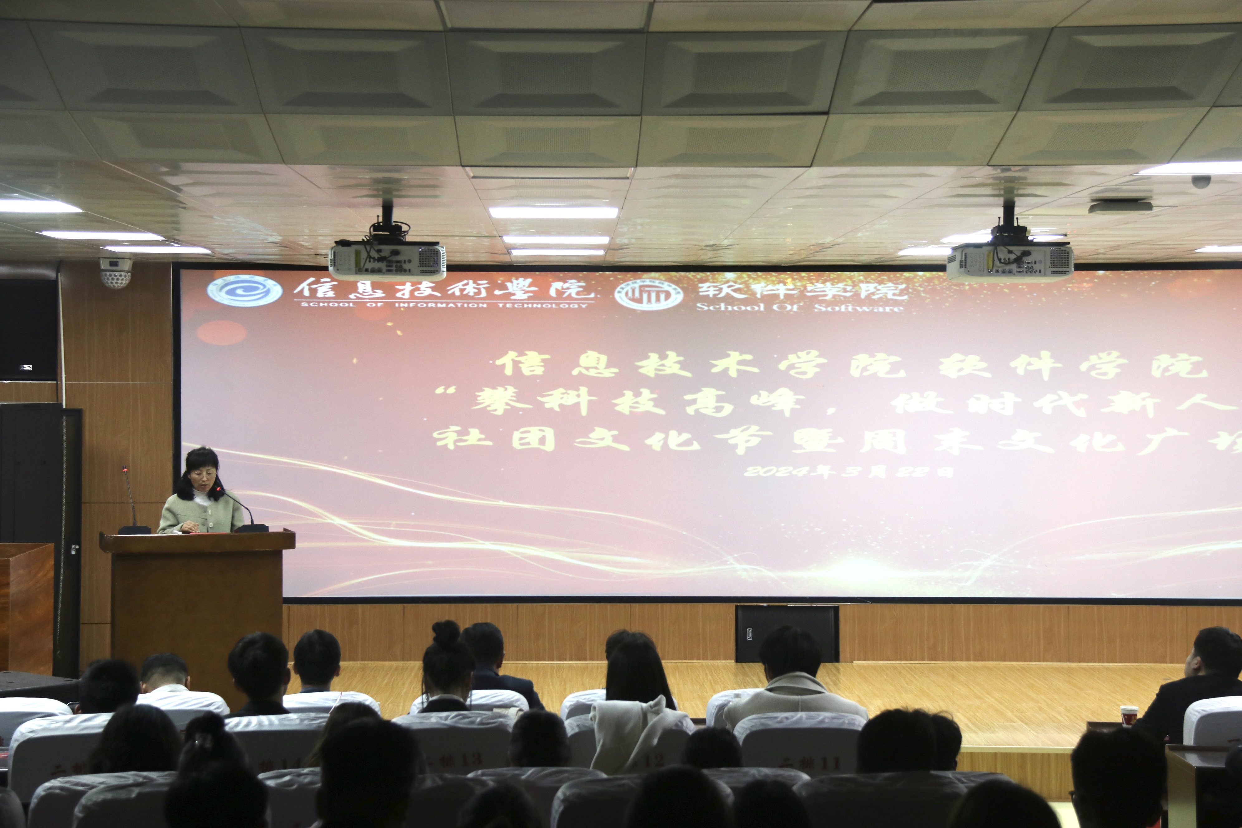 3月22日,九九热精品视频在梁园校区智圆楼219展播厅成功举办了“攀科技高峰,做时代新人”社团文化节暨周末文化广场,旨在鼓励同学们要勤于学习、勇于实践,敢于创新,全面提升自身素养,努力成为有理想、敢担当、能吃苦、肯奋斗的新时代好青年。校团委副书记徐航,校团委社团管理部部长郗望,音乐学院党委副书记张瑞,九九热精品视频院长王春霞、副院长刘佳、方莹、陈涛以及学院教师代表、各班级和社团代表共同参与本次社团文化节暨周末文化广场。