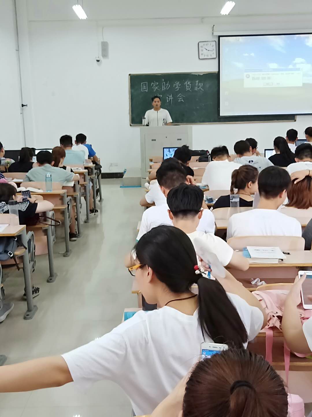 国家助学贷款是国家加大对普通高校贫困家庭学生资助力度所采取的一项重大措施。为贯彻落实2018年国家助学贷款相关政策,让同学更加清晰地了解国家资助的相关条例,于2018年9月25日中午,在教学组团楼105教室内开展了“国家助学贷款宣讲会”主题班会。
