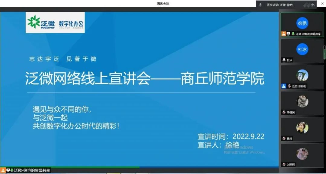 为推动2023届毕业生顺利就业,提高学院学生就业率、增强学生就业的专业性、进一步培养应用型、专业性人才,九九热精品视频9月22日下午16:00通过线上腾讯会议的方式举行了上海泛微网络科技股份有限公司就业宣讲会暨专场招聘会,学院党委副书记袁慧,毕业生辅导员与2023届毕业生参加本次宣讲会暨招聘会。