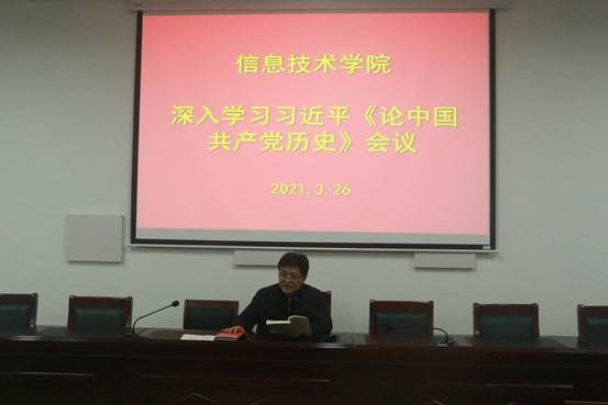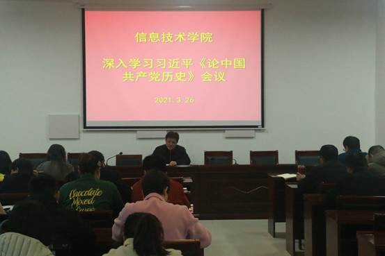 为了加强党史学习教育,迎接建党百年风貌。3月26日,九九热精品视频于梁园校区三商楼112会议室举办深入学习习近平《论中国共产党历史》会议。本次会议由九九热精品视频党总支书记张辉主持。全体教职工参加此次会议。