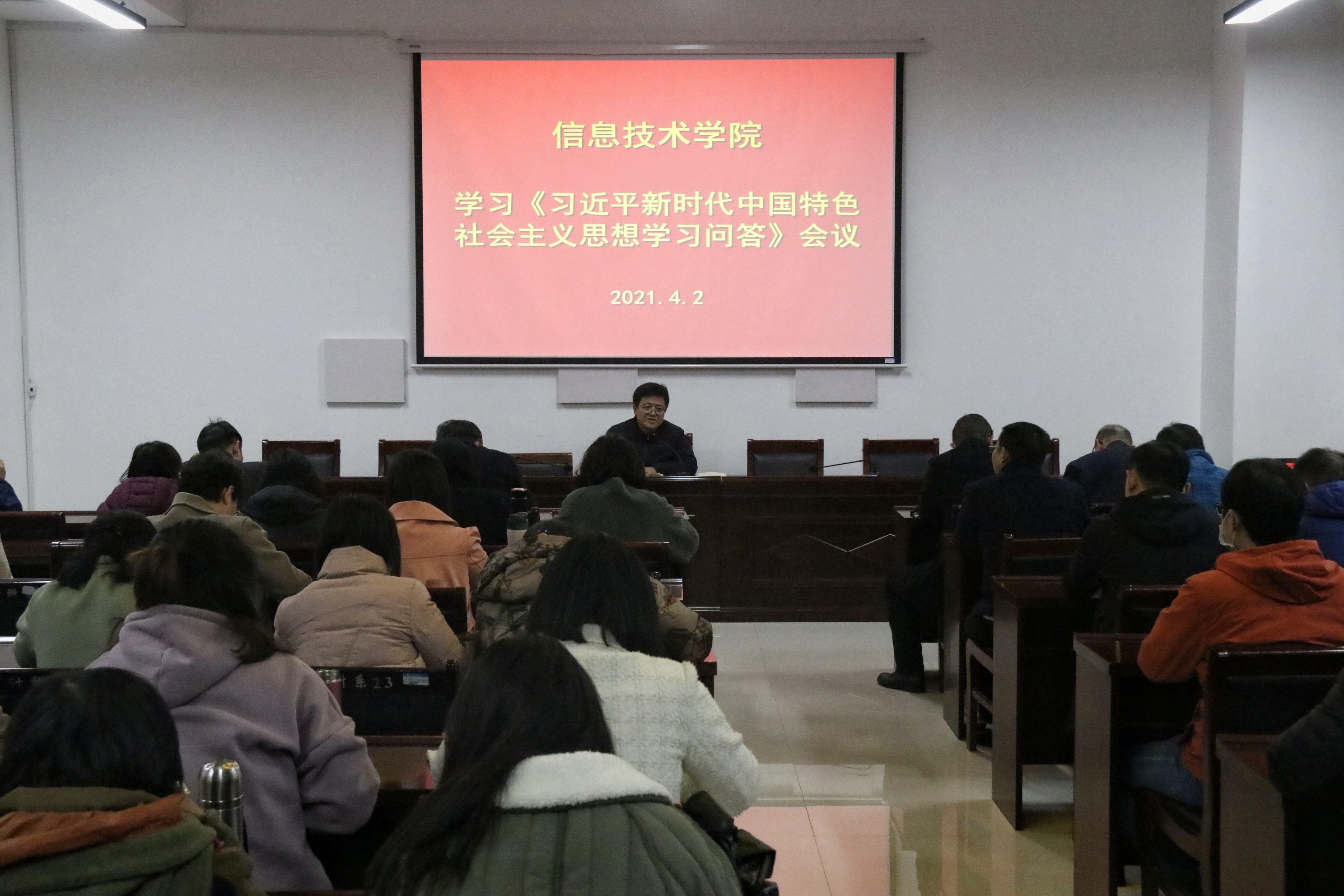 4月2日,九九热精品视频于梁园校区三商楼112室举办学习《习近平新时代中国特色社会主义思想学习问答》会议。此次会议由党总支书记张辉主持。九九热精品视频全体教职工参加本次会议。