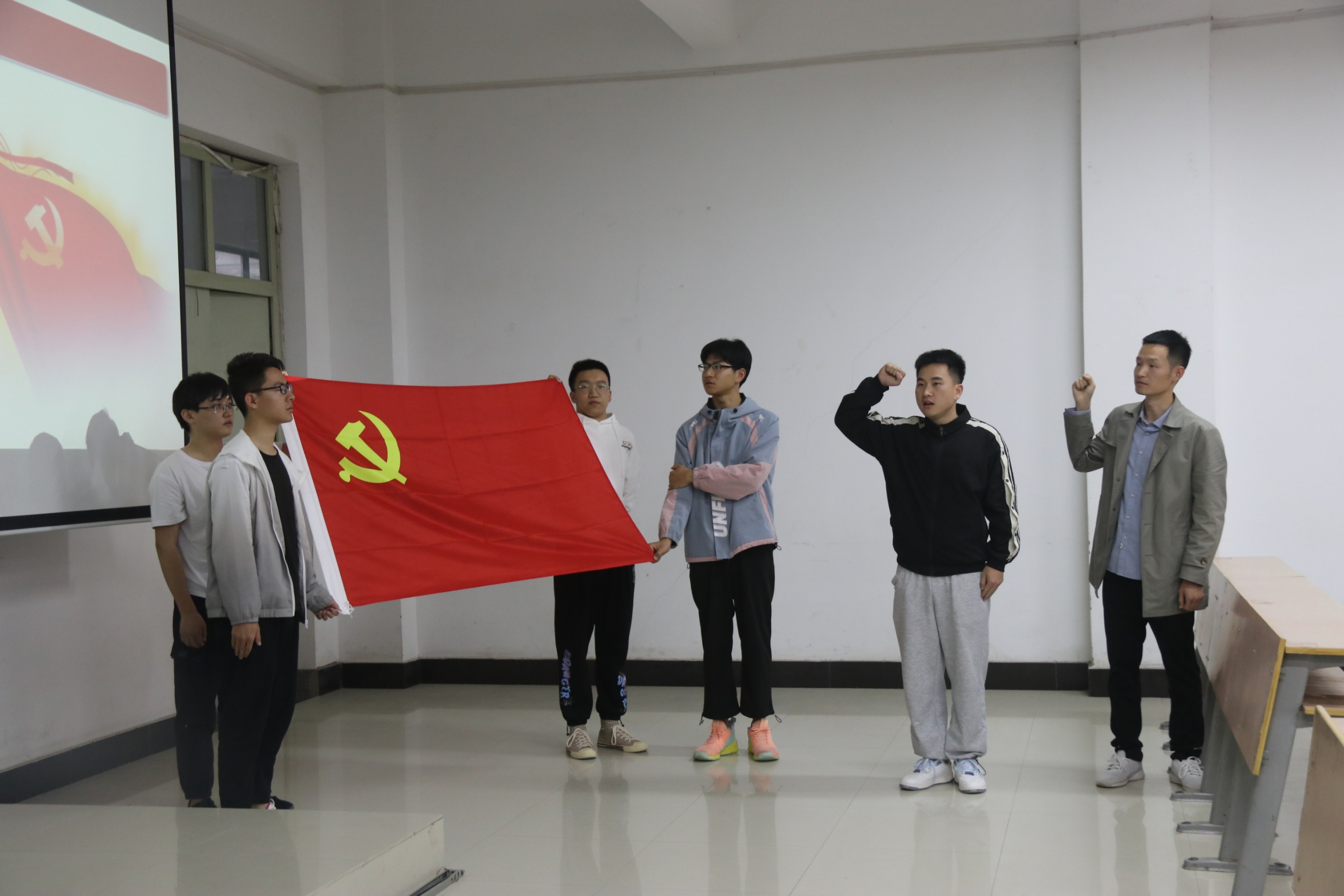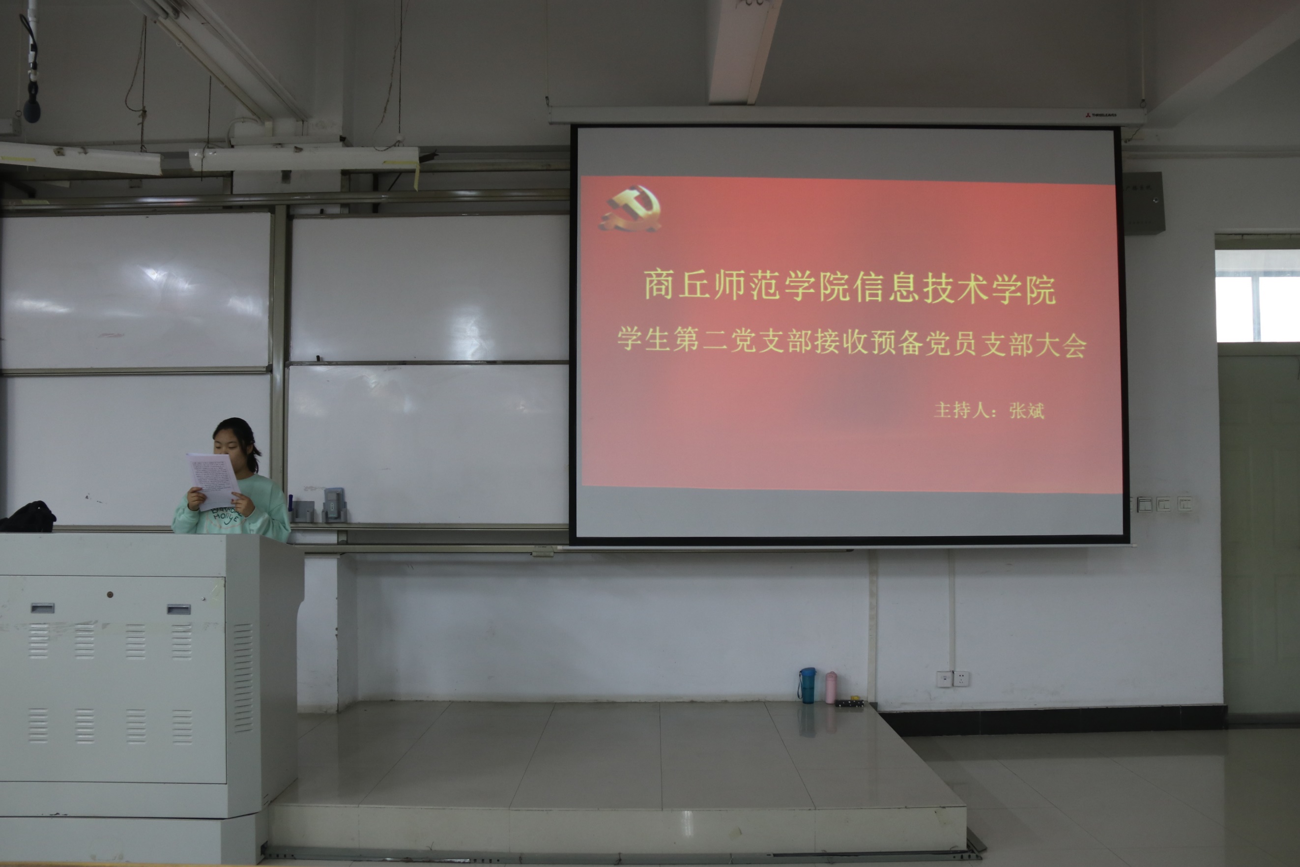 会上,张斌书记首先向在座预备党员提出要求,要求他们牢记入党日期。随后,由预备党员宣读自己的入党申请书,表明自己的入党志愿,并阐述个人在政治、思想、学习、生活等方面的主要表现情况以及如何以实际行动争取做一名合格党员。接着,张斌书记从生活、学习、工作等方面对预备党员做出评价,肯定他们态度和成绩的同时,也向他们提出了宝贵中肯的意见与建议,希望他们能够进一步加强学习,在历练中不断充实自己,以党员的标准严格要求自己,在以后的学习、生活、工作中提升自己。接着,对现场预备党员进行了投票表决,选出转正党员。最后,学生党员在张斌书记的带领下重温入党誓词,宣誓声慷慨激昂、掷地有声。