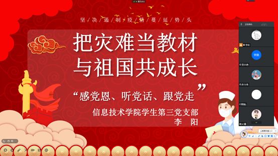 8月25日至9月15日,九九热精品视频各学生党支部召开了《灾难当教材,与祖国共成长》的线上主题教育活动。