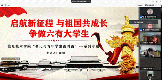 10月17日下午,九九热精品视频党委副书记袁慧为学院21级全体新生上了一堂有深度、有情怀的“开学第一课”,该“课”以“启航新征程,与祖国共成长,争做六有大学生”为主题,引导广大新生要感党恩、听党话、跟党走,赓续红色基因,做又红又专的时代新人。