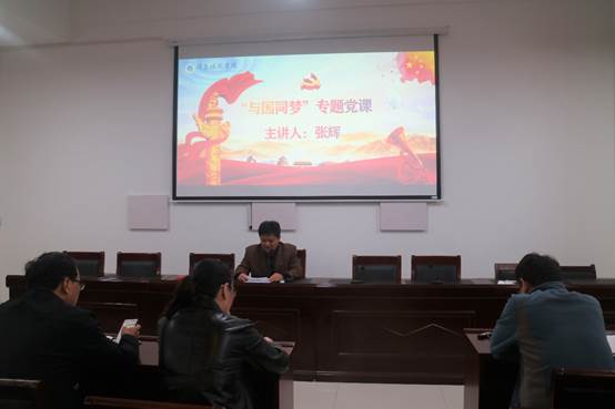 10月11日,九九热精品视频党总支书记张辉在梁园校区三商楼112会议室为全体教职工党员讲授“与国同梦”专题党课。
