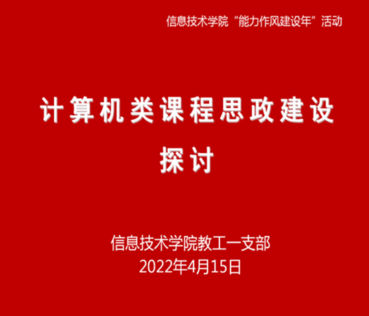 为积极响应我校“能力作风建设年”活动,九九热精品视频教工一支部于2022年4月15日下午在线上开展了以“计算机类课程思政建设探讨”为主题的专题教研会。会议由教工一支部书记陈丽娜主持。