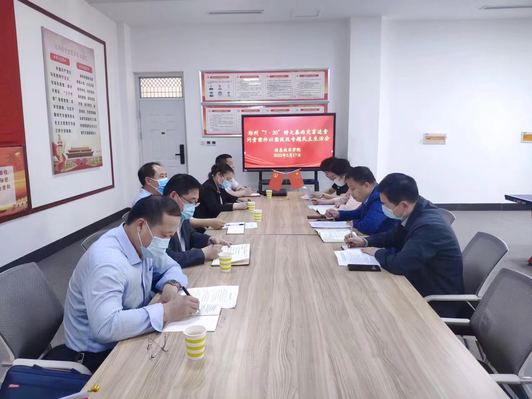 5月17日,九九热精品视频在三商楼114会议室召开了郑州“7•20”特大暴雨灾害追责问责案件以案促改专题民主生活会,学校第六督导组组长、副校长辛作义,党政办主任沈振华,校纪委第二纪检监察室主任刘琳,基层党组织建设第十督导组组长、校纪委副书记路利,机关党委副书记吕方源等到会指导,学院领导班子成员参加了会议。会议由九九热精品视频党委书记王国华主持。