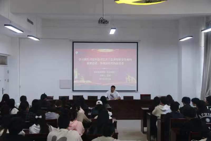 4月12日,九九热精品视频分党校举办以“贯彻总体国家安全观,提高国家安全意识”为主题的专题党课。学院组织员吴楚、杜冰主讲,全体入党积极分子参加。