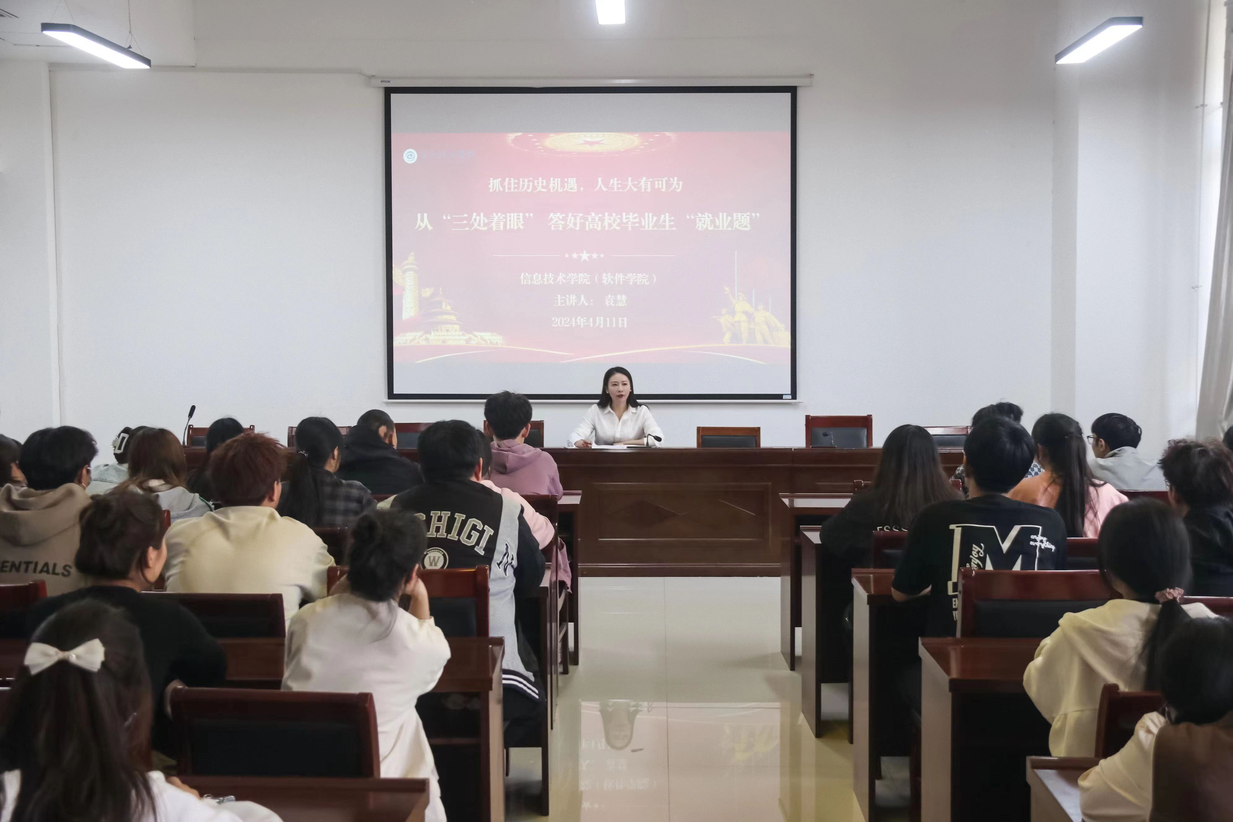 4月11日,九九热精品视频分党校举办以“抓住历史机遇,人生大有可为——从‘三处着眼’ 答好高校毕业生‘就业题’”为主题的党课培训,学院党委副书记袁慧主讲,全体入党积极分子参加。