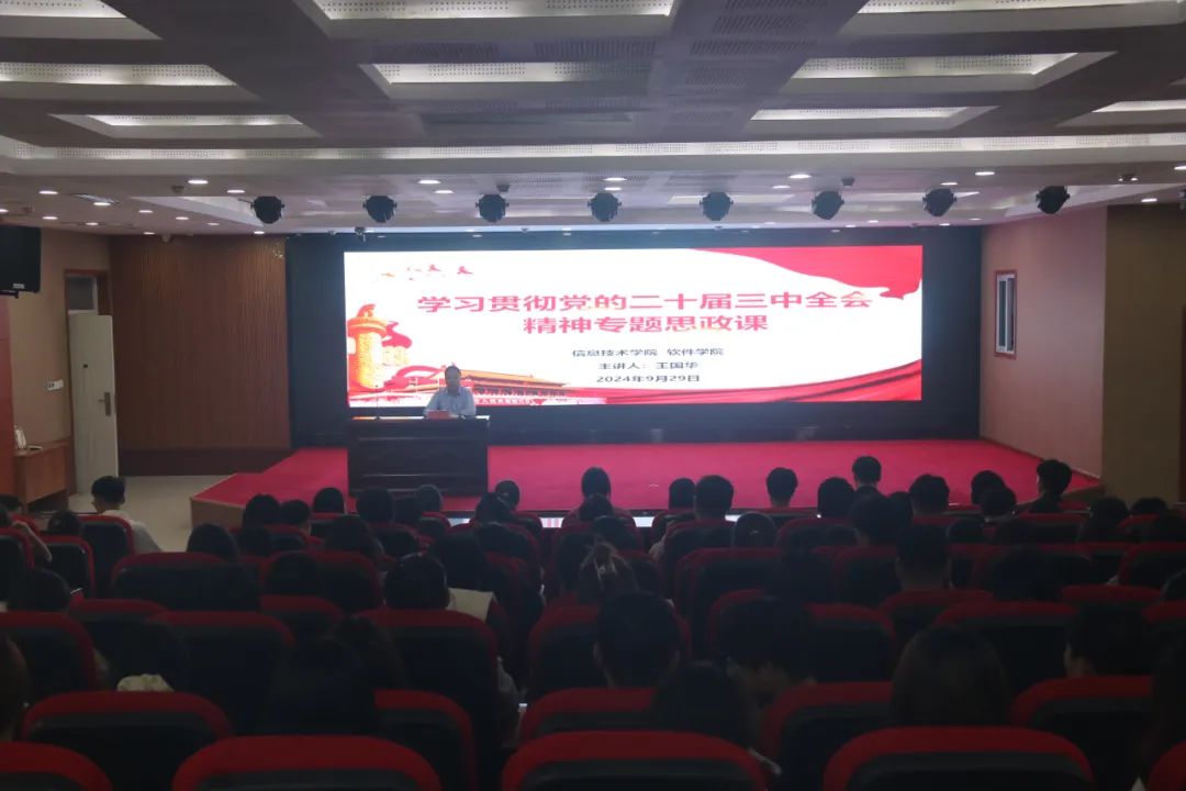 9月29日晚,九九热精品视频在三商楼145报告厅举行了学习贯彻党的二十届三中全会精神专题思政课,学院各年级学生代表200余人参加了会议。
