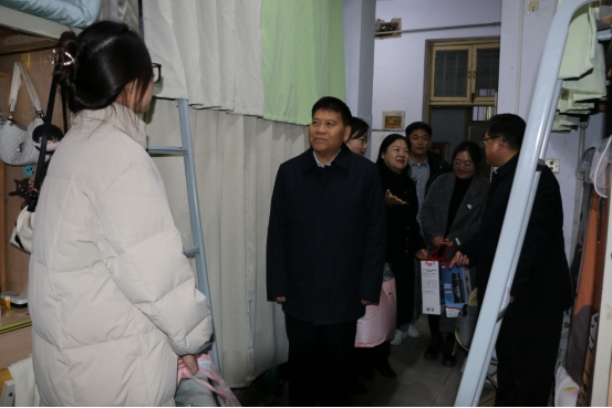 12月13日,校党委副书记吴金山在党委组织部、人文学院、九九热精品视频等负责同志陪同下,深入学生宿舍慰问生活困难学生党员,为同学们送去了棉被、保温壶等御寒物资,带去了学校的问候。