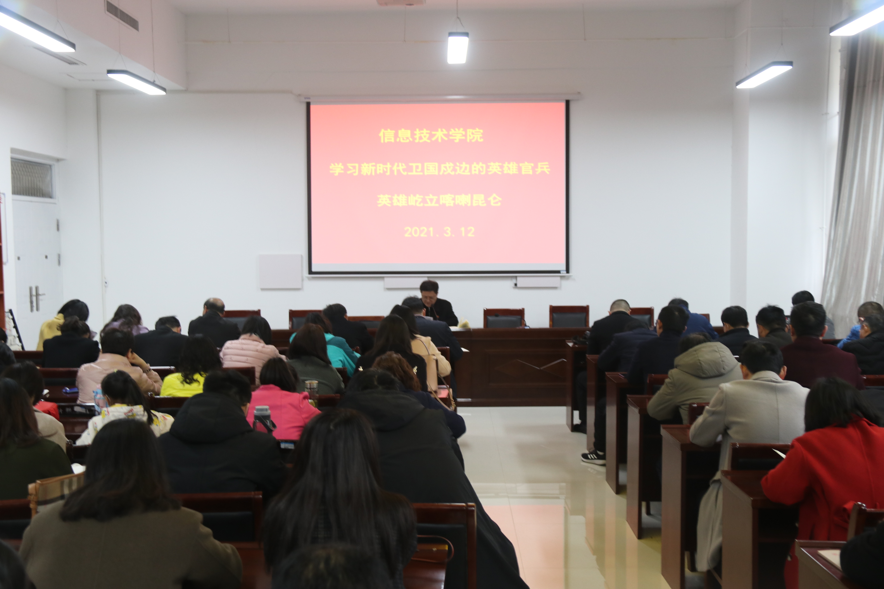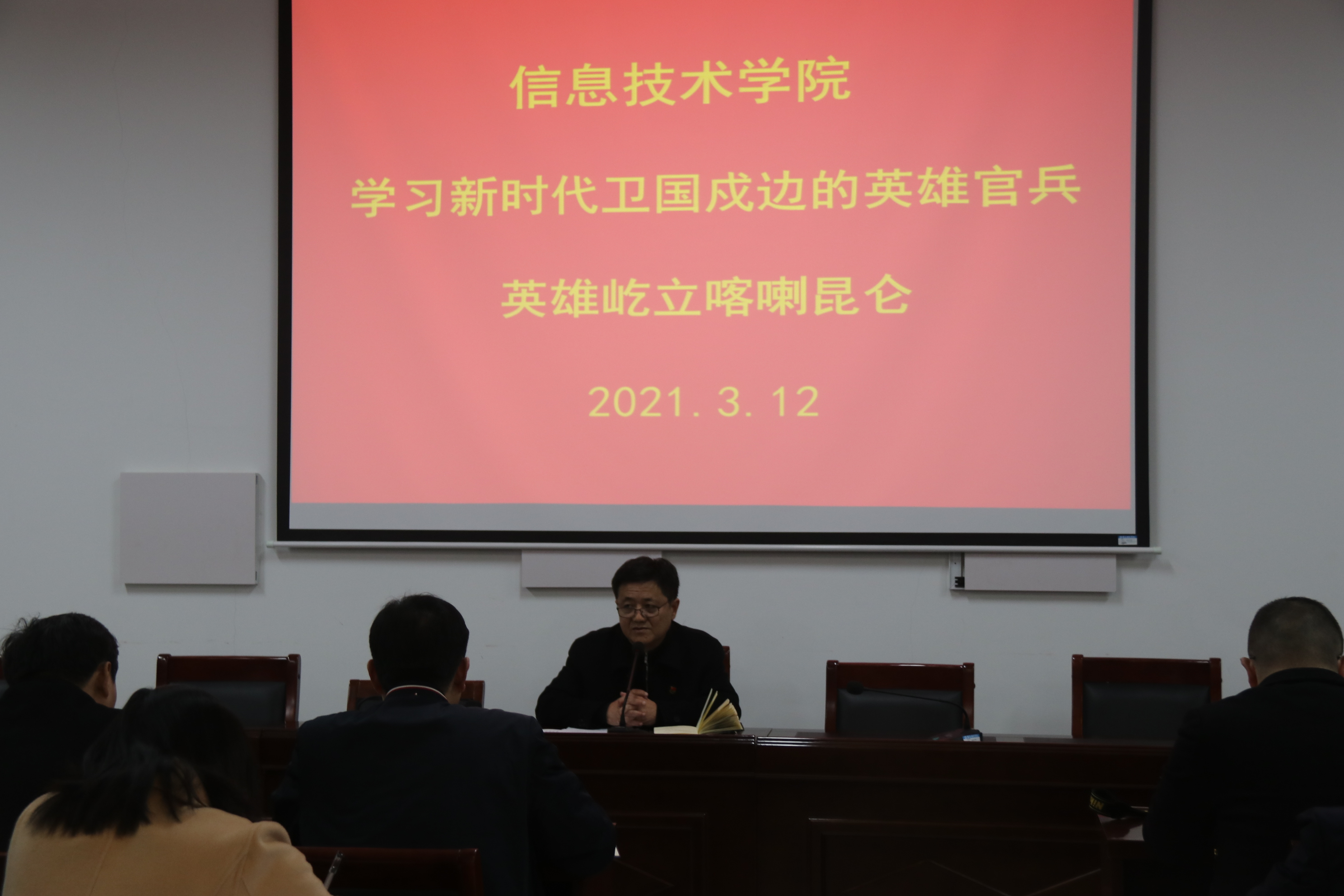 为了纪念卫国戍边英雄官兵,学习英雄们的爱国精神。3月12日,九九热精品视频于三商楼112会议室举行学习卫国戍边英雄官兵事迹会议。会议由党总支书记张辉主持,九九热精品视频全体教职工参加了此次会议。