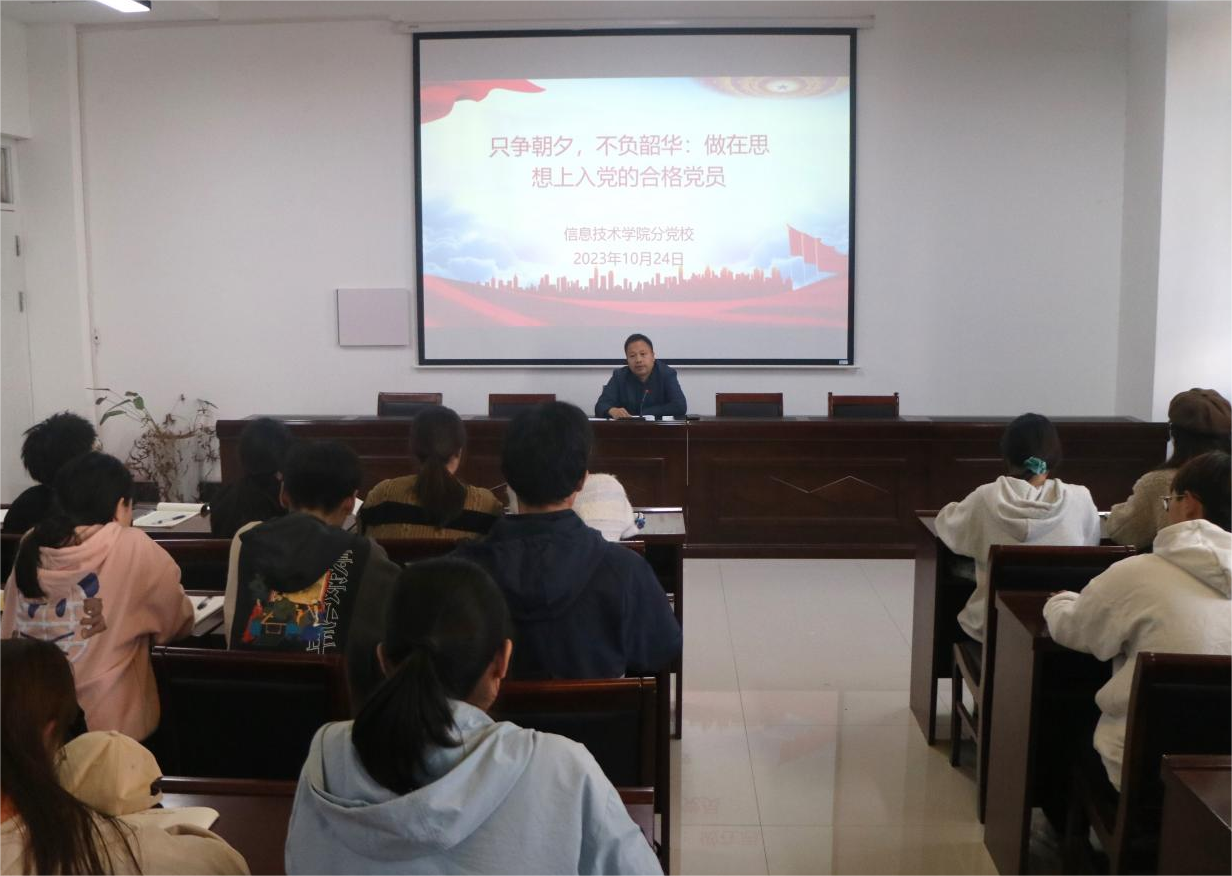 10月24日,九九热精品视频开展了以“只争朝夕,不负韶华: 做在思想上入党的合格党员”为主题的党课培训,本次党课由九九热精品视频党委书记王国华主讲,全体中级班入党积极分子参加。