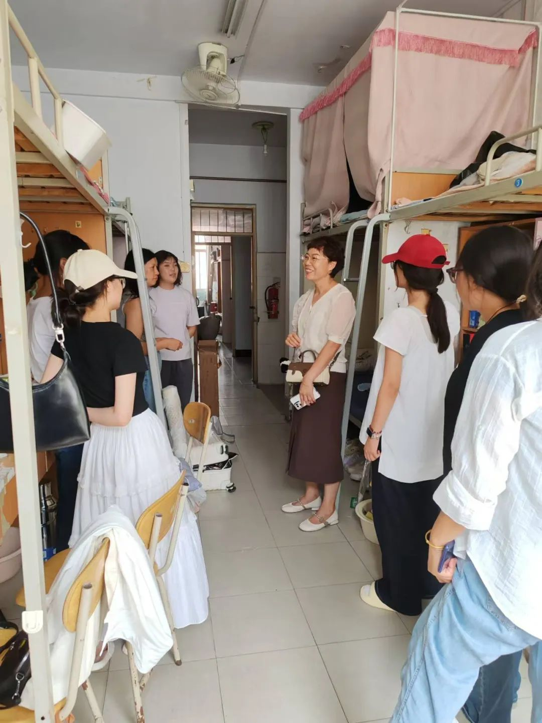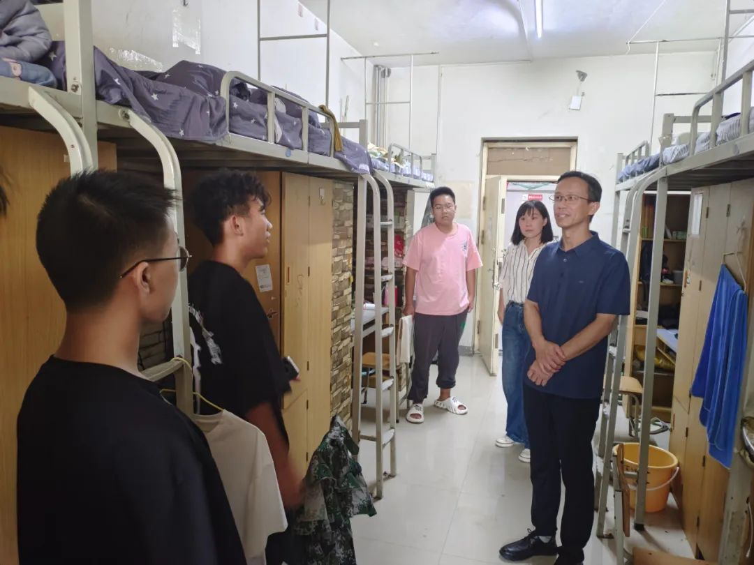 为深入了解2024级新生入学后的适应情况,及时知晓新生需求,帮助新生更好更快地融入新环境。9月8日,九九热精品视频党委书记王国华、院长王春霞、副院长方莹、刘佳、陈涛及全体辅导员老师走访慰问24级新生宿舍。