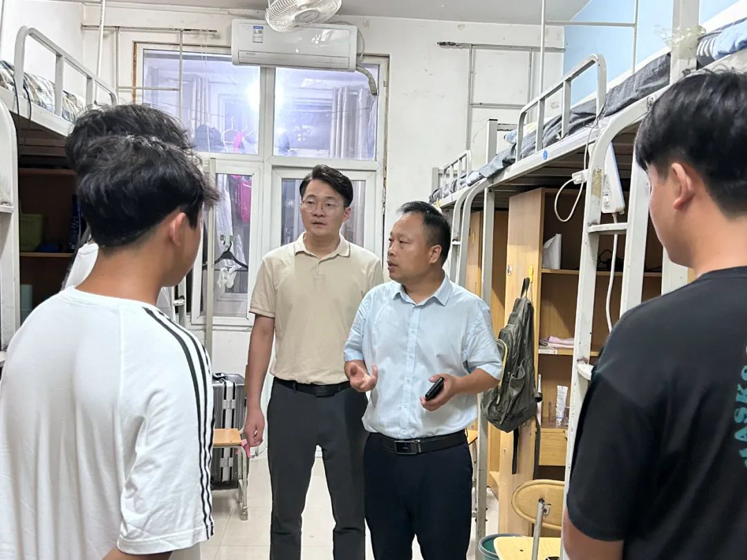在走访慰问的过程中,学院领导与学生们展开了亲切的交流,了解同学们的思想、学习和生活状态,询问同学们对学院的建议和意见,并欢迎同学们积极向学院反馈问题。领导们叮嘱他们要提高安全意识,注意个人财产安全,重视消防安全,共同营造良好的学习和生活卫生环境。