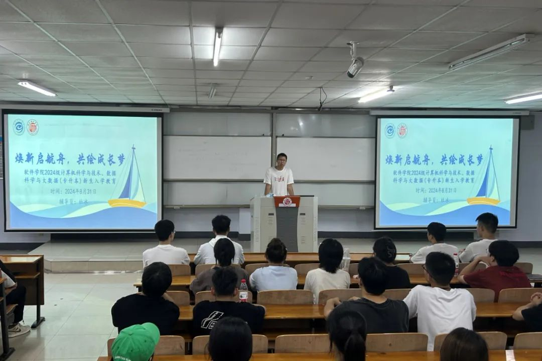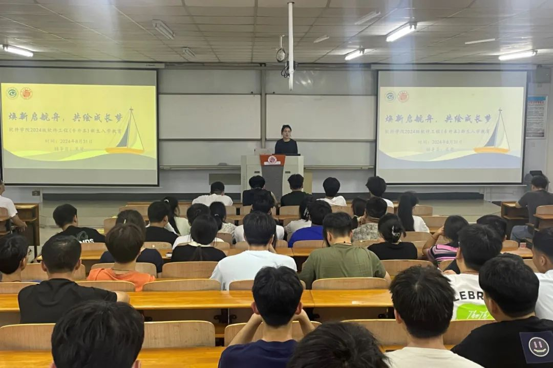 8月31日,九九热精品视频于智圆楼207、208教室开展“扬帆起航、筑梦未来”新生开学第一课暨新生入学教育主题班会,九九热精品视频2024级专升本全体新生参加,班会由专升本新生辅导员杜冰、吴楚主持。