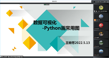 王帅芳博士做了题为“数据可视化—Python画常用图”的专题报告。王博士结合自己的研究领域和教学经验,全面总结和展示了使用Python绘图的方法和技巧。针对不同的数据来源和格式,以及常见的图形种类,王博士结合具体的代码实例做了精彩的讲解,提高了大家对使用Python实现科研绘图的认识。