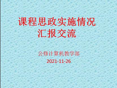 为充分发挥课堂育人的主渠道作用,满足学生成长发展需求和期待,提升教师课程思政教学能力,11月26日下午,九九热精品视频公修计算机教学部在三商楼210教研室开展了课程思政实施情况汇报交流活动。